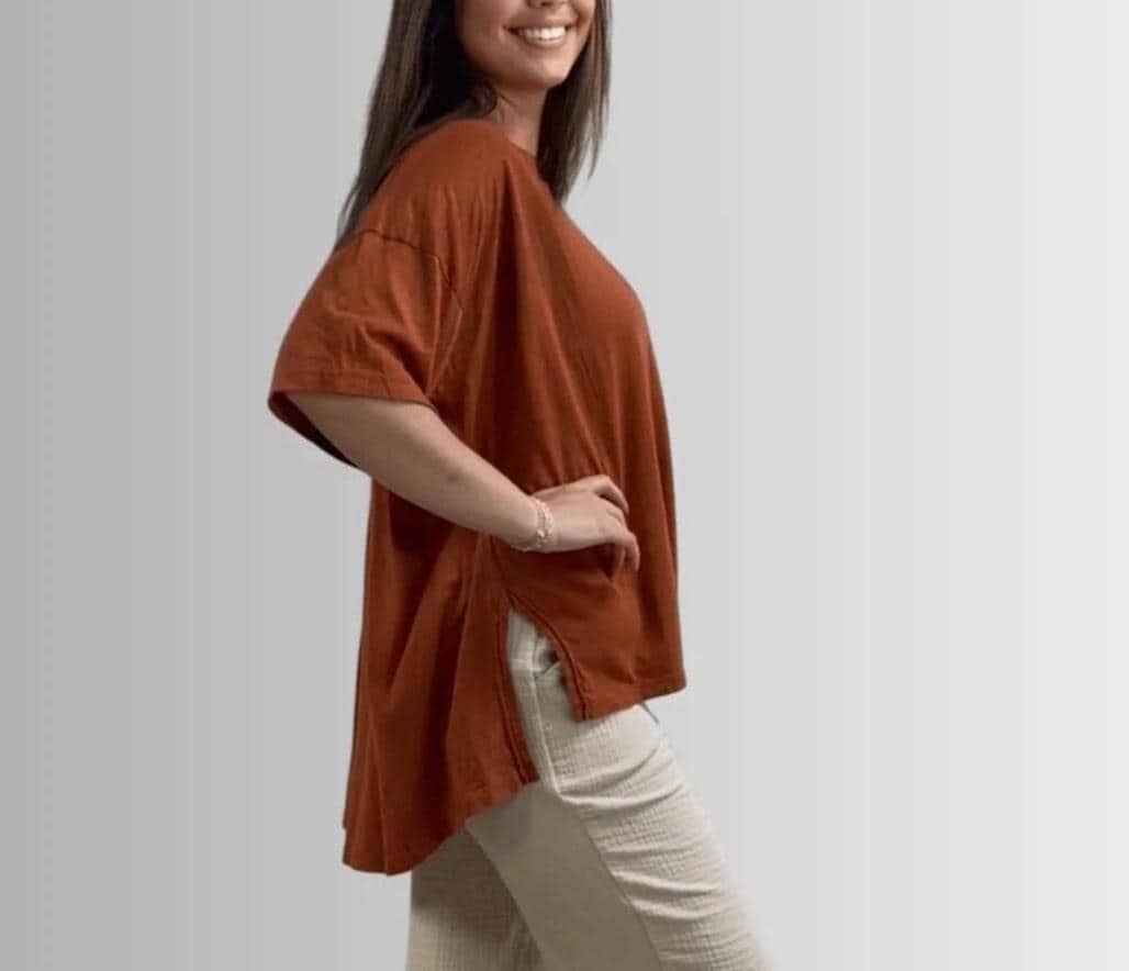 A fresh new summer top! Neckline can be styled for an off the shoulder look or a cute round neck detail. It's a loose fit which makes it comfortable and breathable. Made with high quality material, perfect for sensitive skin. Colors available: